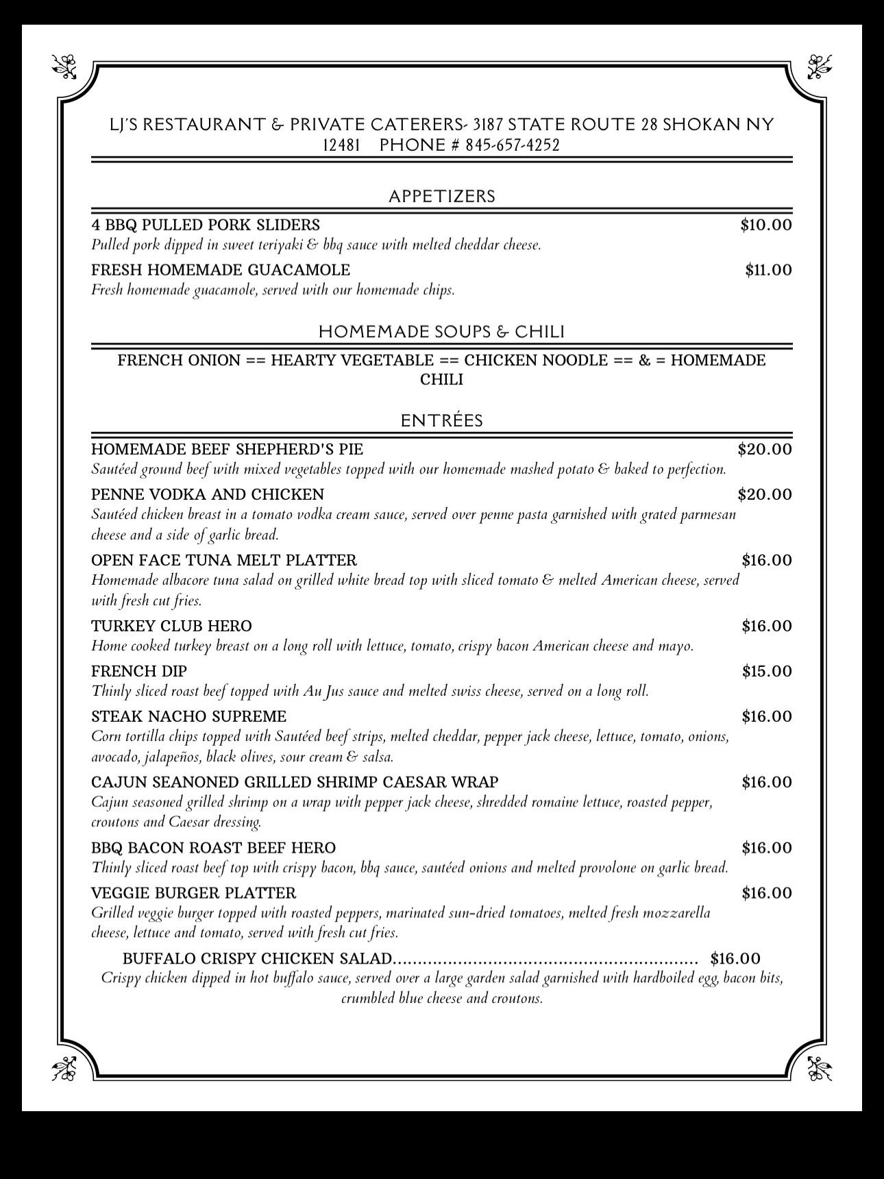 Copyright © 2026 LJ'S RESTAURANT & PRIVATE CATERERS - All Rights Reserved.